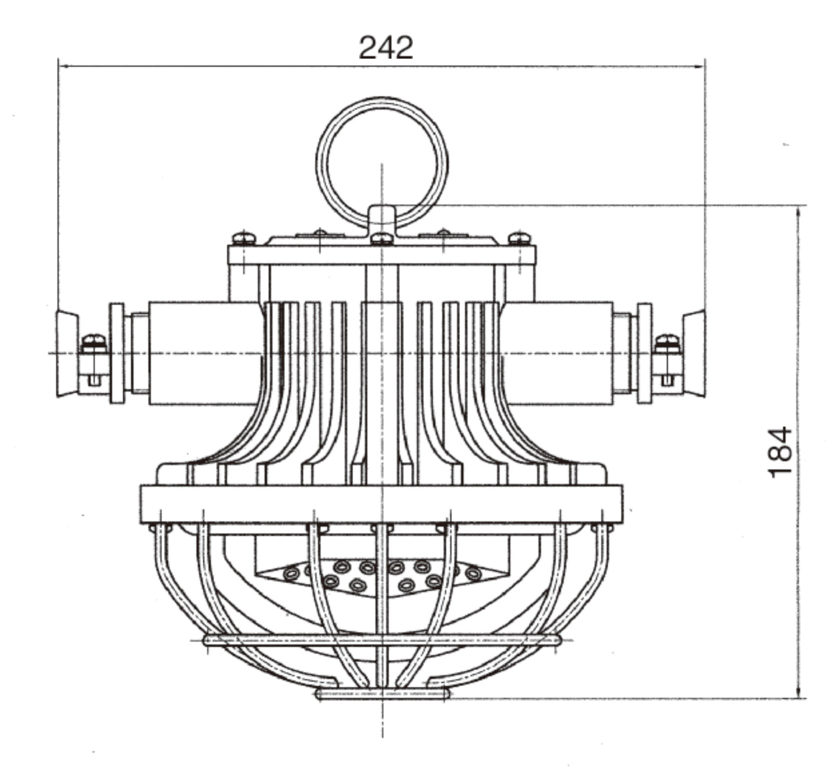 LED燈由上蓋、上殼體、下殼體、防爆透明玻璃罩、護(hù)罩等組成,上蓋與上殼體用M4螺釘連接,下殼體用M6螺釘與上殼體相連。防爆透明玻璃罩、護(hù)罩用M4螺釘固定在下殼體上。上殼體外有M4外接地螺釘、銘牌等。上殼體內(nèi)有接線板、M4內(nèi)接地螺釘、LED驅(qū)動(dòng)電源板。下殼體內(nèi)有密封墊、防爆透明玻璃罩、LED光源、散熱板。散熱板通過(guò)上殼體將光源熱量散發(fā)到燈體外。上蓋、上殼體、下殼體、防爆透明玻璃罩之間均有符合規(guī)定的隔爆接合面隔爆。
